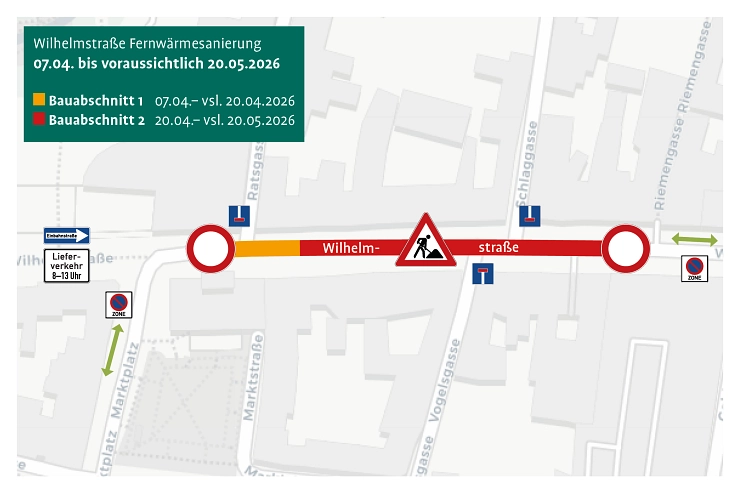 In der Heiligenstädter Innenstadt stehen ab nächster Woche größere Bauarbeiten an. Die Stadtwerke Heilbad Heiligenstadt erneuern ab dem 7. April ein Teilstück der Fernwärmeleitung in der oberen Wilhelmstraße. Die betroffene Leitung wurde 1989 verlegt und muss aufgrund ihres Alters vorsorglich ausgetauscht werden. Zusätzlich werden sechs Hausanschlüsse saniert. Die Baustelle erstreckt sich über rund 100 Meter zwischen Rathaus und Riemengasse und ist bis voraussichtlich 20. Mai eingerichtet. Für den Fahrzeugverkehr gilt […]